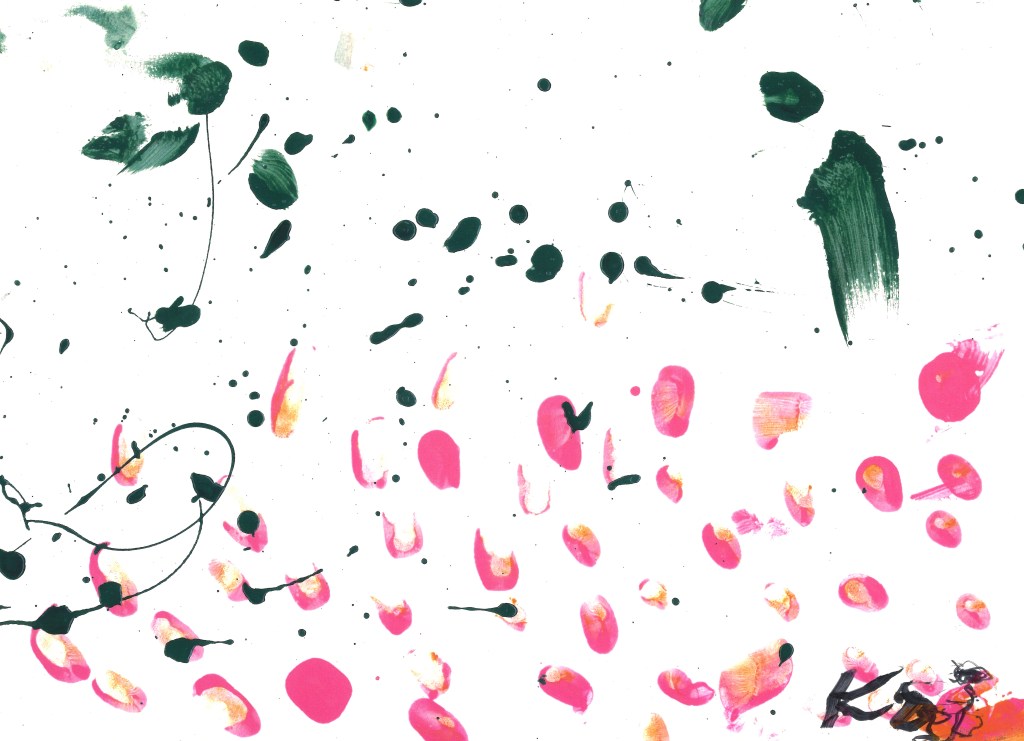 Adorned with vibrant pink and green strokes and dots. This captivating piece of art will bring a touch of cosmic beauty to any space.